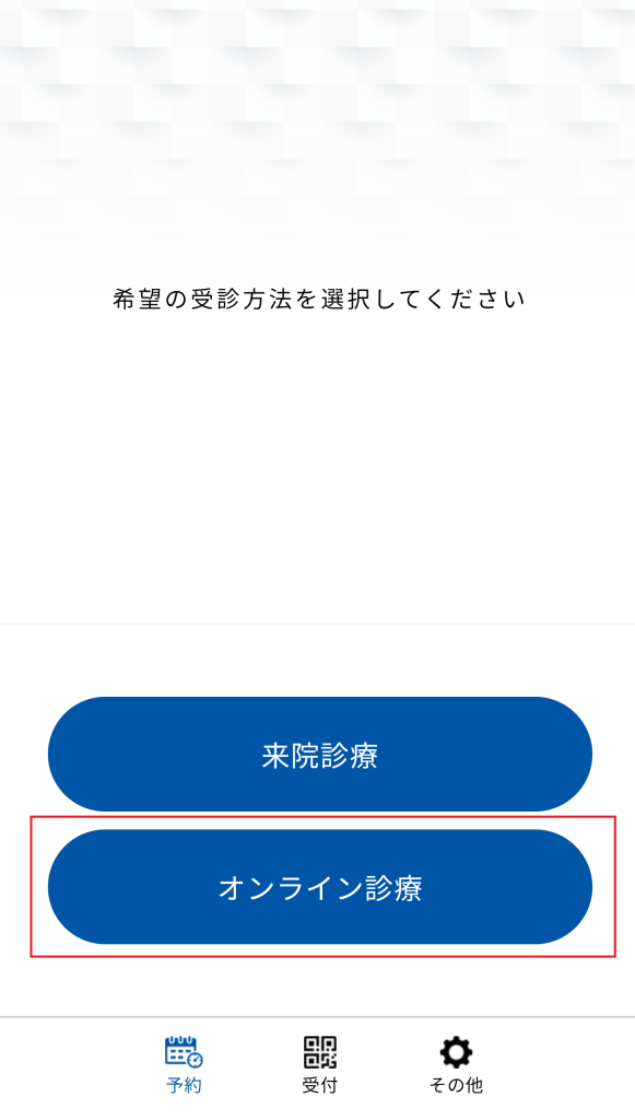 ただし、オンライン診療は医院によって、利用できない場合があり、その場合は、「オンライン診療」ボタンは表示されませんので、医院にお問い合わせ下さい。
