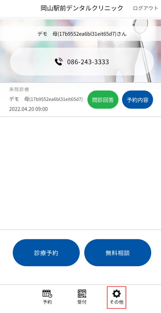 ホーム画面の最下段の右橋の「その他」ボタンをタップすると、その他メニューが開きます。